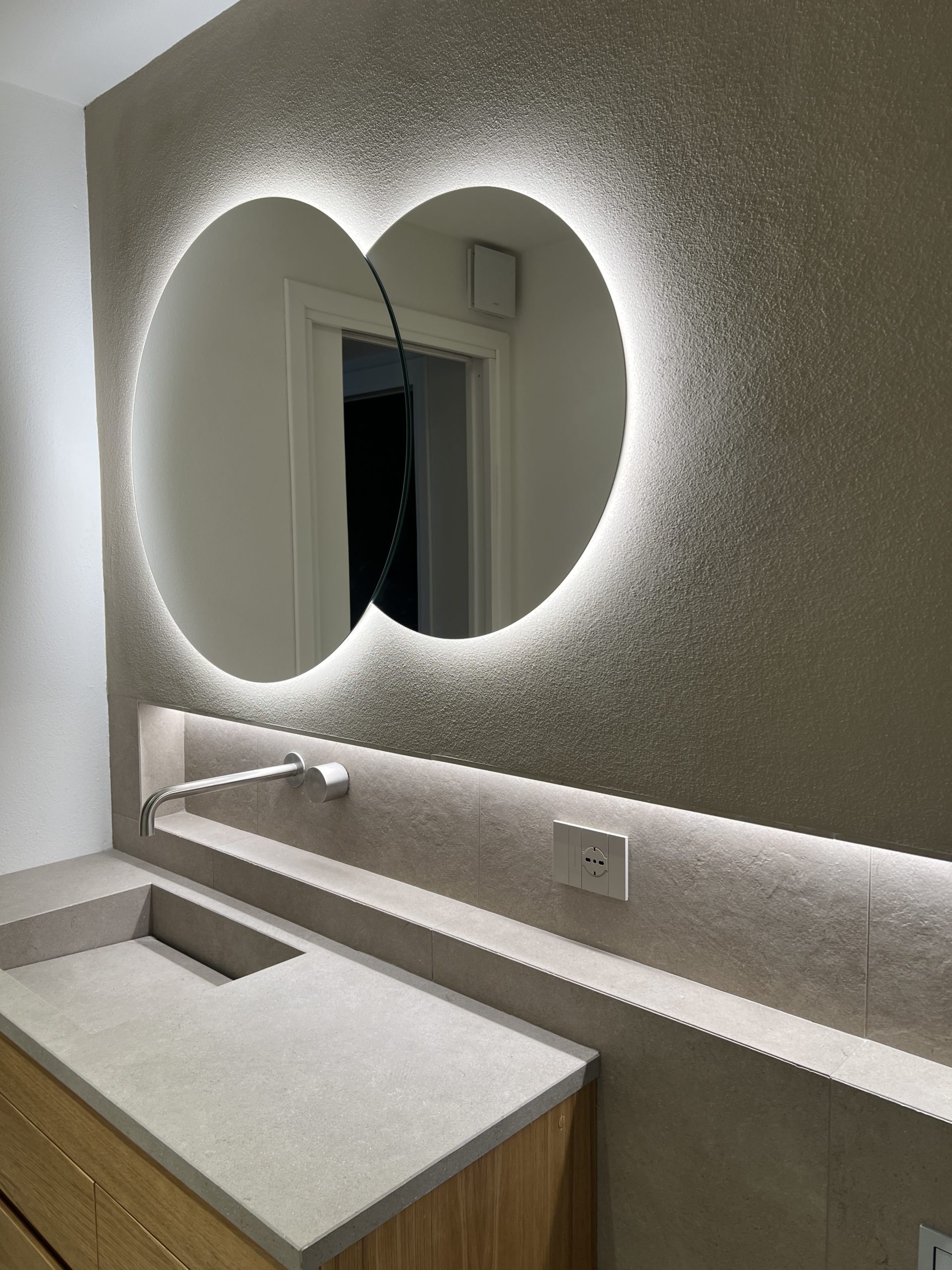 Abbiamo eliminato i corridoi chiusi originali e creato un unico ambiente living-cucina con volumi contenitivi integrati su misura. I materiali scelti — rovere naturale, superfici opache chiare e inserti in metallo brunito — definiscono un ambiente caldo ma essenziale. L’illuminazione tecnica è completamente incassata per lasciare pulizia visiva durante il giorno e scenari morbidi la sera. Dal punto di vista energetico, sono stati sostituiti serramenti e isolata la parete nord, portando l’appartamento in classe energetica A3.”
